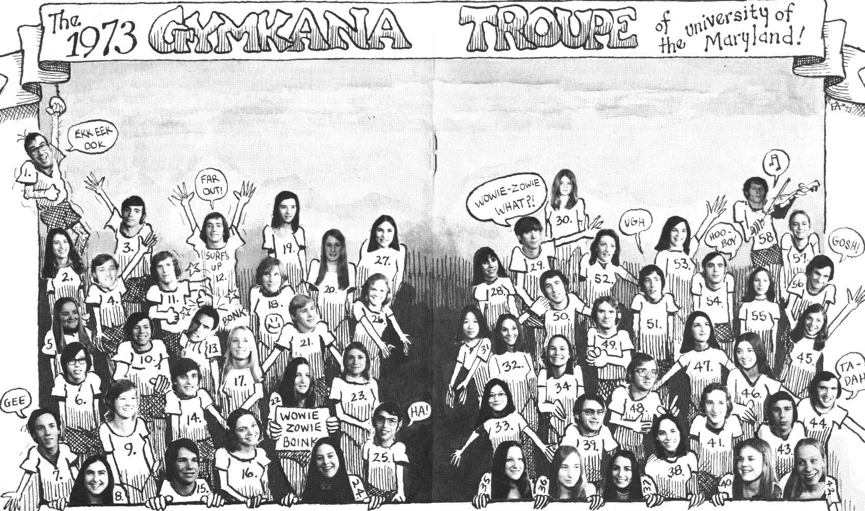 Noteworthy is the fact that Fred Altiere, a member of the Troupe and the one who drew the cover for the Home Show Program, was a cartoonist with his own series, "Scriblits", in the Diamondback.